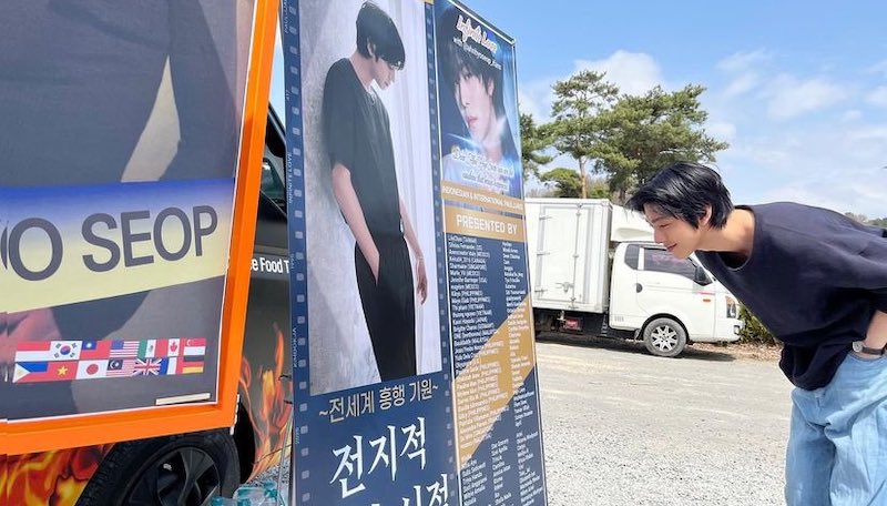 撮影中のヒョソプへの応援サポートのコーヒートラックとご本人の認証ショットが、@ahnhyoseop_archive で更新されました〜!