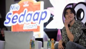 ドラマ『社内お見合い』の主演である彼は、インドネシアのインスタントラーメンブランド「ミーセダップ」の20周年記念イベントの一環として、カジュアルなスタイルで登場しました。