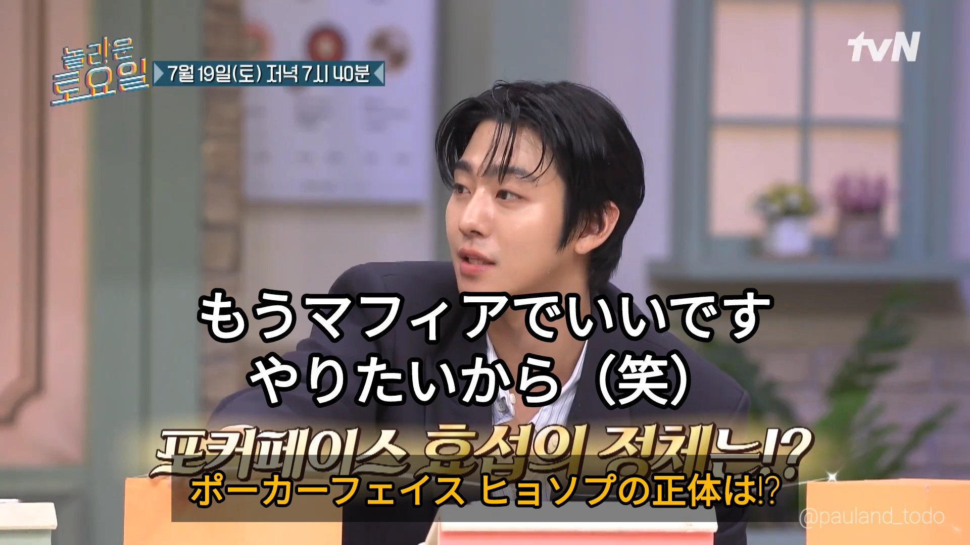 日本語字幕付きで日本で放送されるのはしばらく先だろうけど(どうせCS )、バラエティで真面目だったり照れて笑ったりするヒョソプ楽しみじゃーん😇https://t.co/5wwFTtvlQL pic.twitter.com/GUSSPDStYt