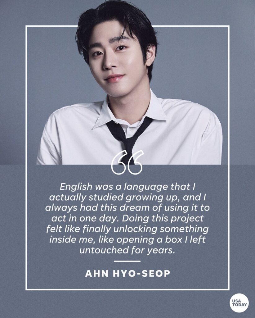 「物語には、とても特別なエネルギーがあって、この旅のすべてに参加したいと思わせてくれたんです」と#アン・ヒョソプはUSA TODAYに語った。