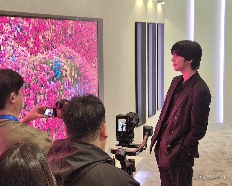 アン・ヒョソプは会場を回りながら、サムスンの大型テレビをはじめとする展示製品を直接チェック。プレスカンファレンス終了後も、展示動線に沿って各ゾーンを移動し、主要機能やデモンストレーションを確認する姿が目撃された。