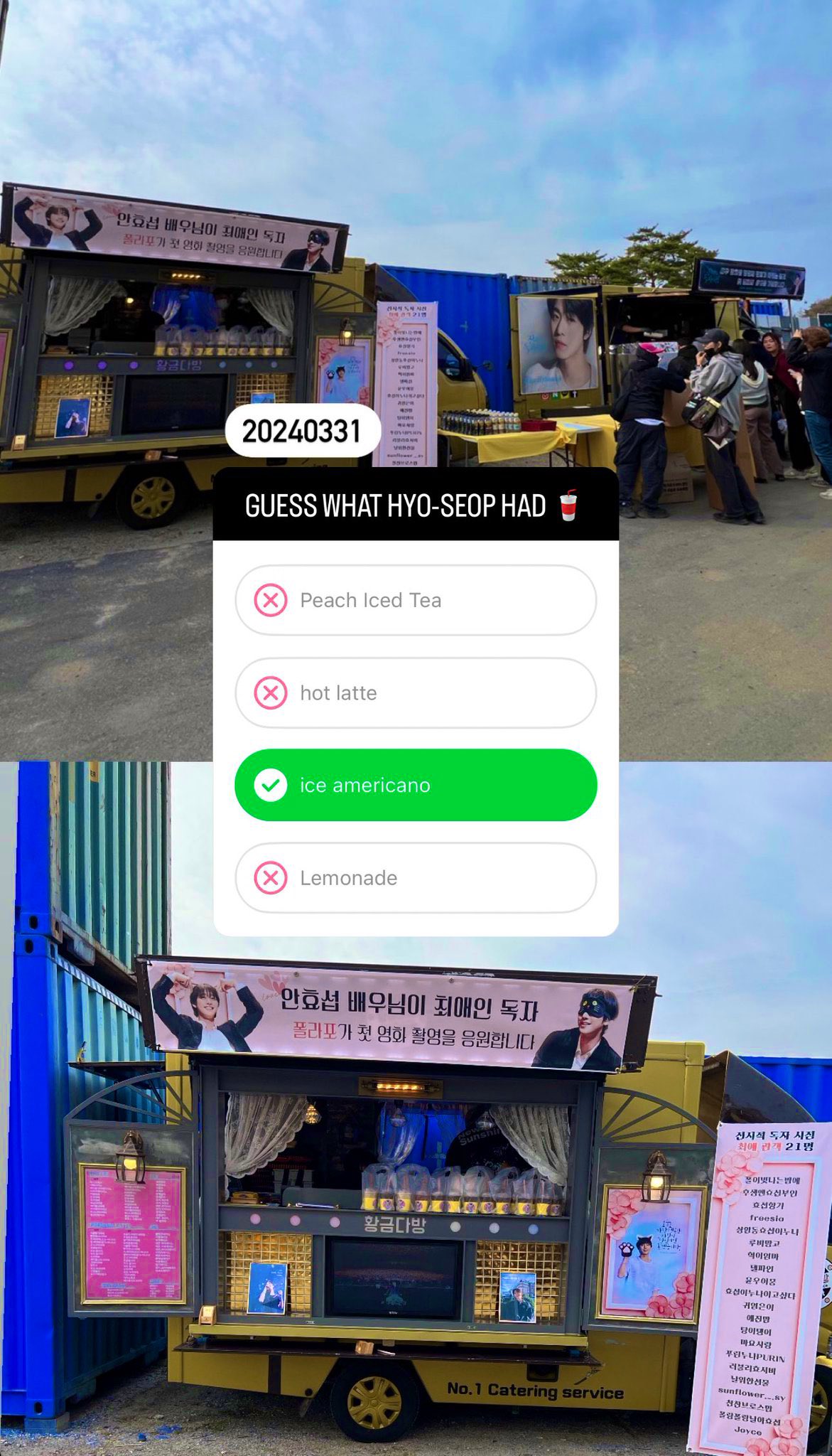 폴라포여러분 감사하고 또 감사합니다.https://x.com/Shywdy/status/1774338530568974644?s=20오늘도 전독시를 사랑하고 아껴주시는 안효섭팬클럽. 폴라포여러분들이 커피와 간식을 보내주셨습니다.
